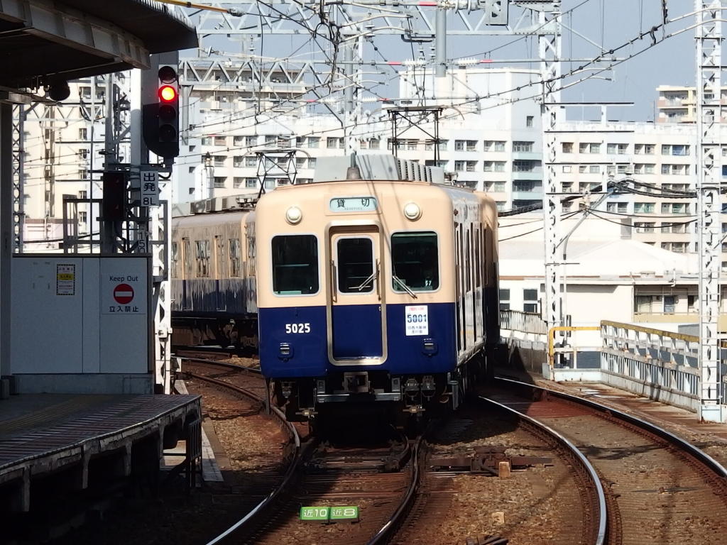 大阪梅田駅から尼崎駅までの運用に充当(ダイヤ上は尼崎駅で車両交換)された後、尼崎駅西方に引き上げていきました。 |