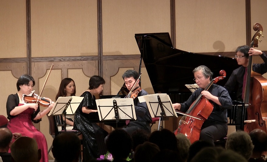 モーツァルトの「ピアノ四重奏曲第1番」を最初に、続いて、ブラームスの「ピアノ四重奏曲第1番」を演奏し、15分の休憩の後に、シューベルトの「ピアノ五重奏曲<ます>」を演奏しました。どれも大曲で、大変でした。アンコールに、ファレンクの「ピアノ五重奏曲第1番」から第3楽章を演奏しました。