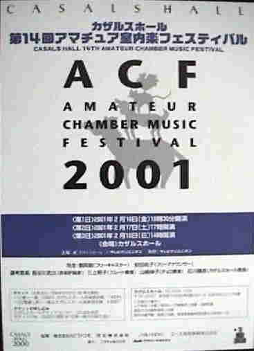 8回アマチュア室内楽フェスティバル(ACF)に出演して以来、その味が忘れられず2度応募しましたが、落選。「やや内輪になっています。ホールでの表現を目指してみて下さい」「方向はとても見えてらっしゃるので、これをいかに深めていくかですね」というコメントをいただきました。