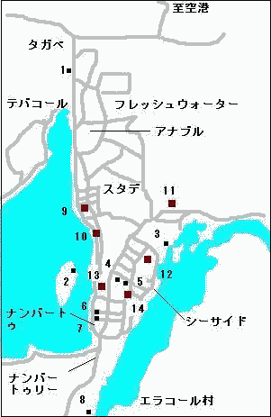左地図は、ポートヴィラの地図。北のタガベ地区からアナブル地区、さらにはその南にかけては住宅街。スタデ地区の西の海岸沿いが商業地区を構成しており、番号10郵便総局のあるあたりがポートヴィラの中心部。テバコールから西の方にはマラポア地区があり、ヴァヌアツで最も優秀な生徒を集めるセカンダリー・スクールがある。南のナンバー・トゥ(第二地区の意)、ナンバー・トゥリ(第三地区の意)も住宅街で、ナンバー・トゥリーの西の方に港がある。